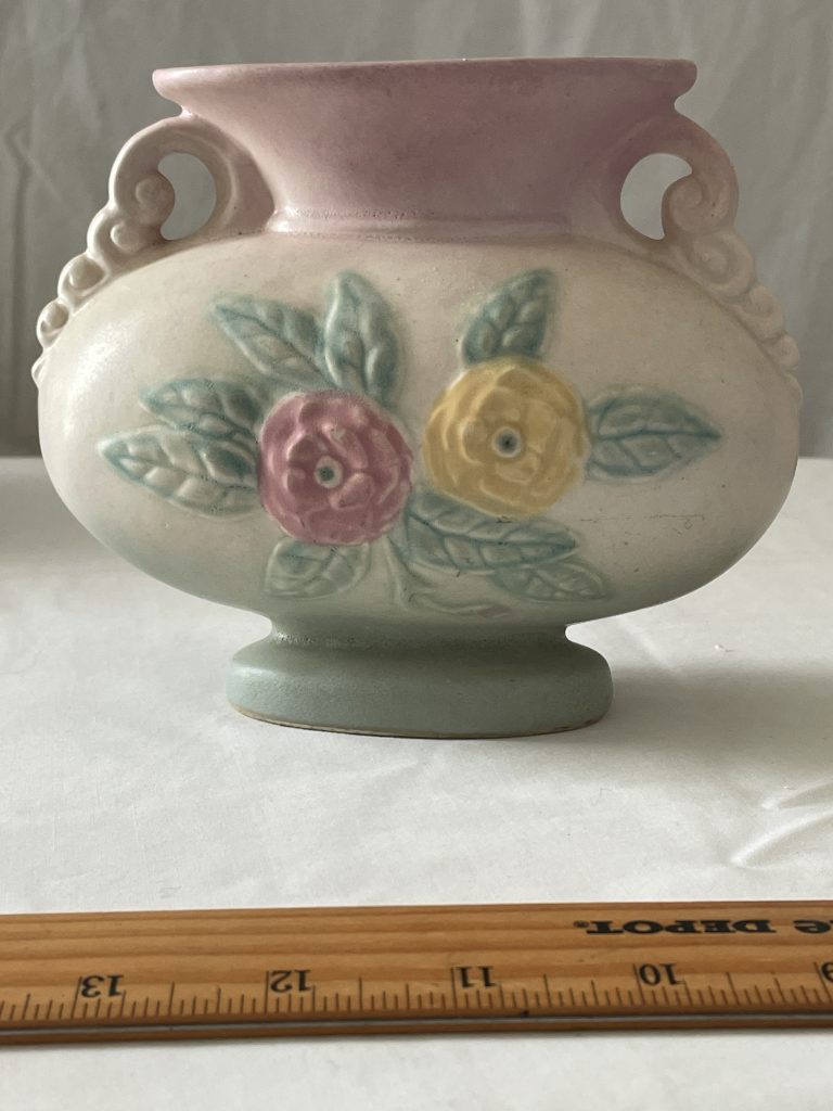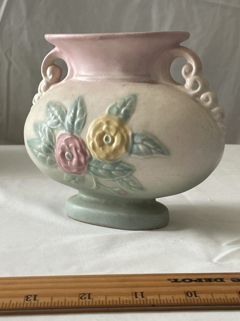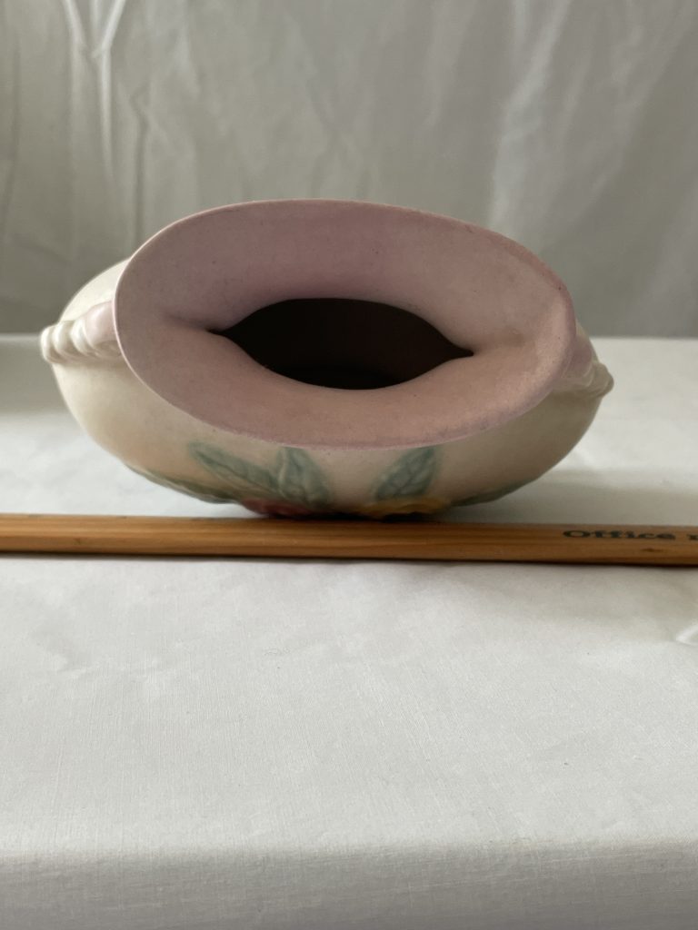 Originating in Crooksville, Ohio, Hull is one of the most recognized names in American pottery production. With a legacy still supported today by the Hull Pottery Association, Hull pieces continue to captivate collectors on the auction market. This piece, marked Hull U.S.A. 123 – 6-1/2″ is in excellent vintage condition with vibrancy in the matte finish colors. Asking $100 (shipping not included).