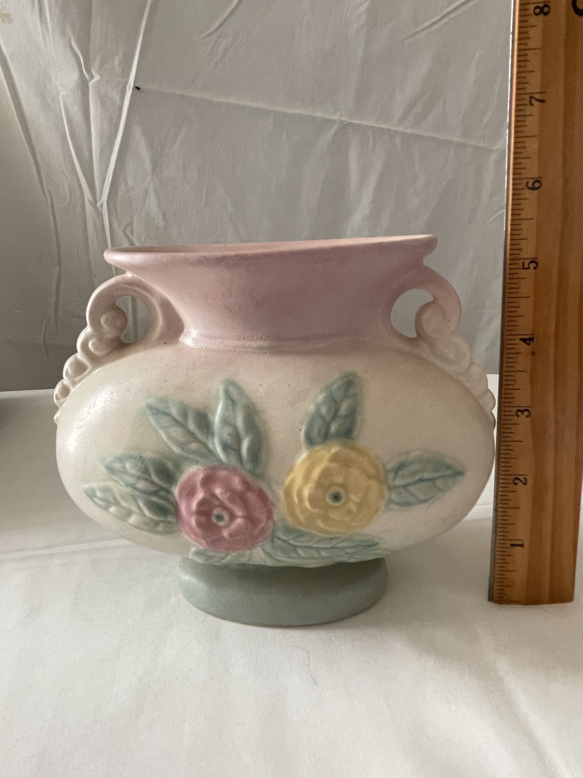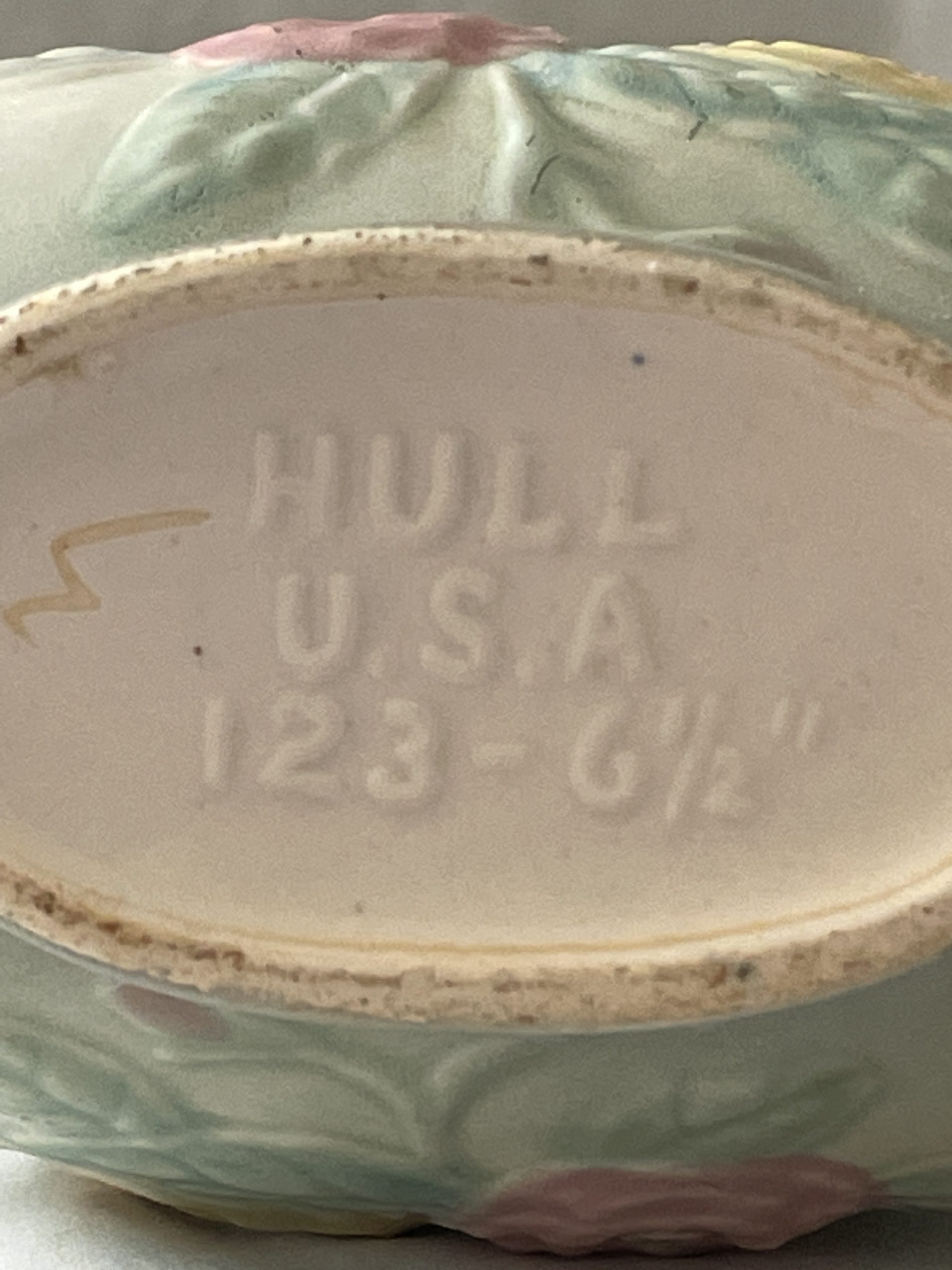 Originating in Crooksville, Ohio, Hull is one of the most recognized names in American pottery production. With a legacy still supported today by the Hull Pottery Association, Hull pieces continue to captivate collectors on the auction market. This piece, marked Hull U.S.A. 123 – 6-1/2″ is in excellent vintage condition with vibrancy in the matte finish colors. Asking $100 (shipping not included).